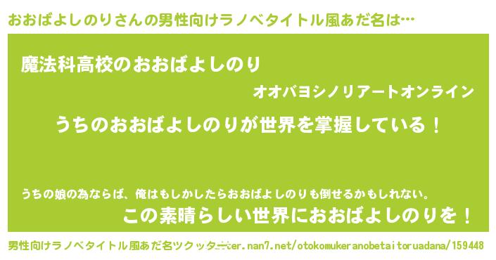 | 意味不明あだ名 | 『自称おおばよしのり』 |