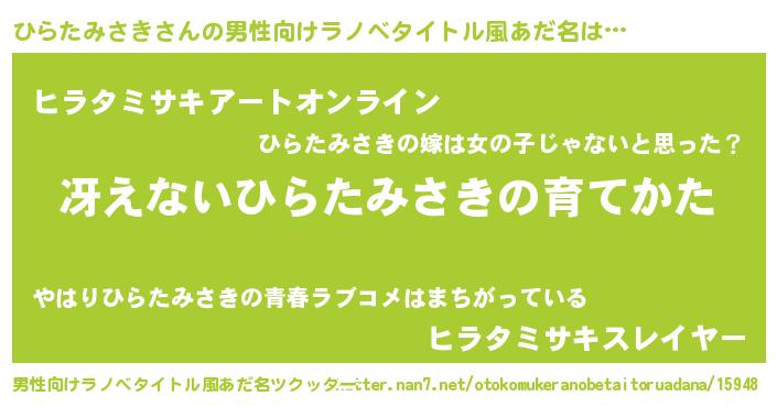 | 胡散臭い通販商品みたいなあだ名 | 『モテモテ間違いなしブレスレット…その名も「ひらたみさき」』 |