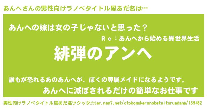 | 女子向けラノベタイトル風あだ名 | 『シンデレラあんへ家の靴箱館』 |