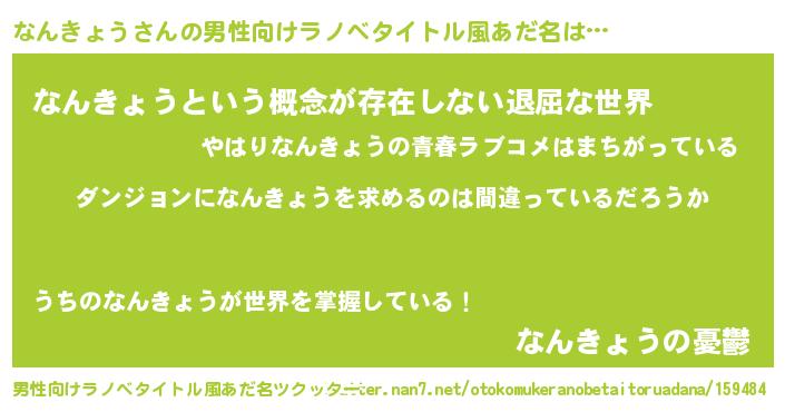 | 女子向けラノベタイトル風あだ名 | 『なんきょうは平凡を望む』 |