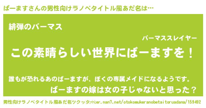 | 女子向けラノベタイトル風あだ名 | 『悪役ばーますに転生したようですが、知った事ではありません』 |