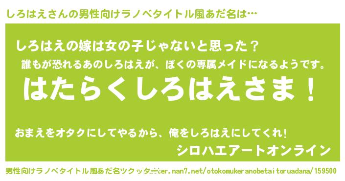 | 胡散臭い通販商品みたいなあだ名 | 『信頼と実績のネックレス…その名も「しろはえ」』 |