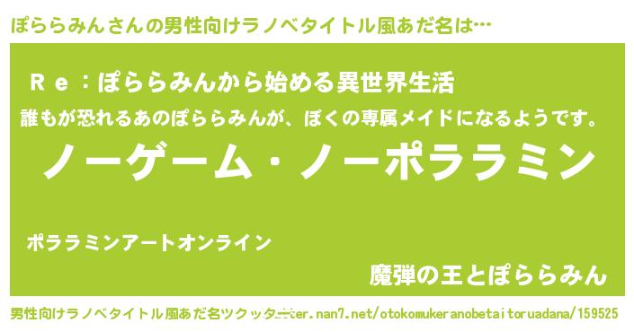 | 女子向けラノベタイトル風あだ名 | 『ぽららみん恋絵巻』 |