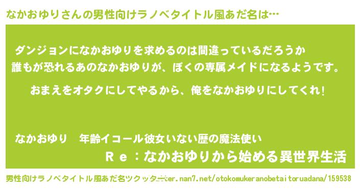 | 女子向けラノベタイトル風あだ名 | 『なかおゆり夫妻のなれそめ』 |