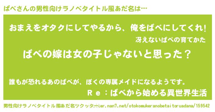 ばべさんの男性向けラノベタイトル風あだ名をツクッター!