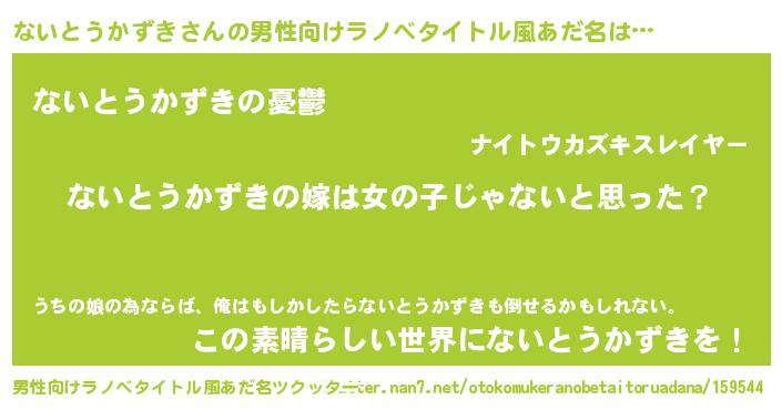 | 女子向けラノベタイトル風あだ名 | 『ないとうかずき様がみてる』 |