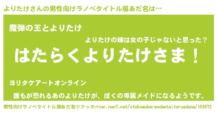 | ヒーロー風カッコイイあだ名 | 『仮面ヨリダー』『ネオヨリタケ』 |