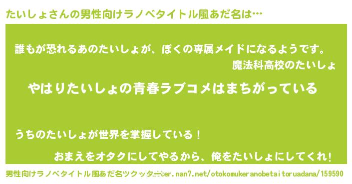 | 女子向けラノベタイトル風あだ名 | 『たいしょの雑貨屋さん』 |