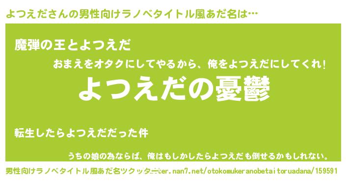 | 胡散臭い通販商品みたいなあだ名 | 『必ず成功する水晶球…その名も「よつえだ」』 |