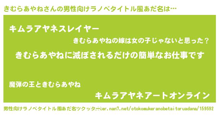 きむらあやねさんの男性向けラノベタイトル風あだ名をツクッター!