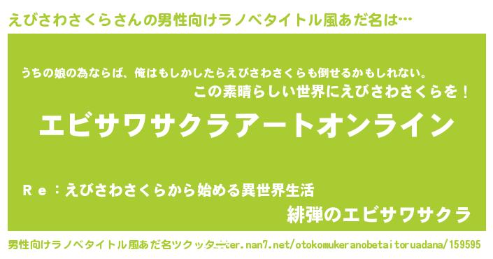 | 女子向けラノベタイトル風あだ名 | 『えびさわさくら姫と円卓の騎士』 |