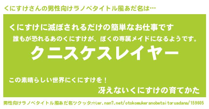 | 胡散臭い通販商品みたいなあだ名 | 『絶対に幸福をもたらす健康食品…その名も「くにすけ」』 |