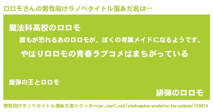 | ヒーロー風カッコイイあだ名 | 『ウルトラロロモマン』『ネオロロモ』 |