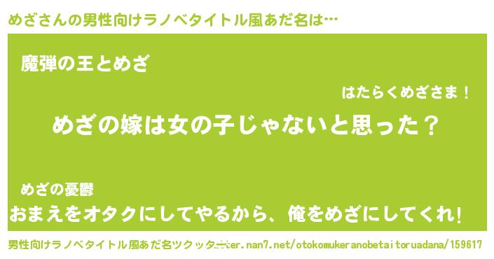 | ヒーロー風カッコイイあだ名 | 『天弓騎士メザ』『仮面メザダー』 |