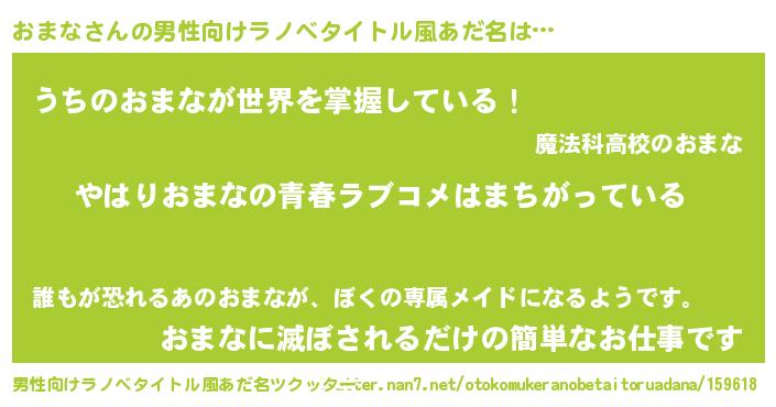 | 女子向けラノベタイトル風あだ名 | 『おまな伯爵の花嫁』『おまなの契約王妃』 |