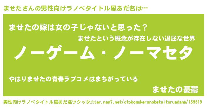 | 女子向けラノベタイトル風あだ名 | 『死神ませたの再婚』『ませた様がみてる』 |