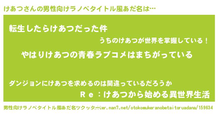 | 女子向けラノベタイトル風あだ名 | 『けあつの雑貨屋さん』 |