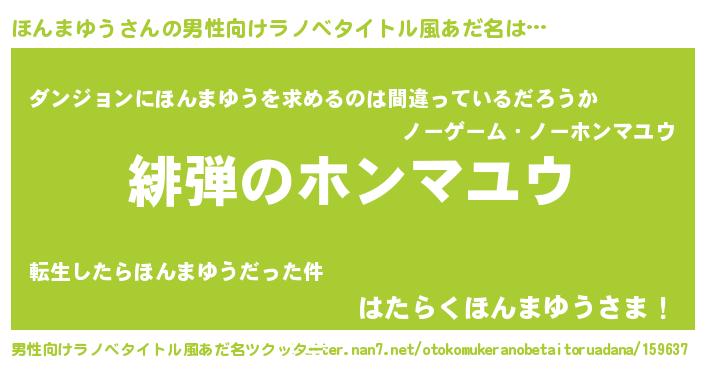 | 胡散臭い通販商品みたいなあだ名 | 『信頼と実績のネックレス…その名も「ほんまゆう」』 |