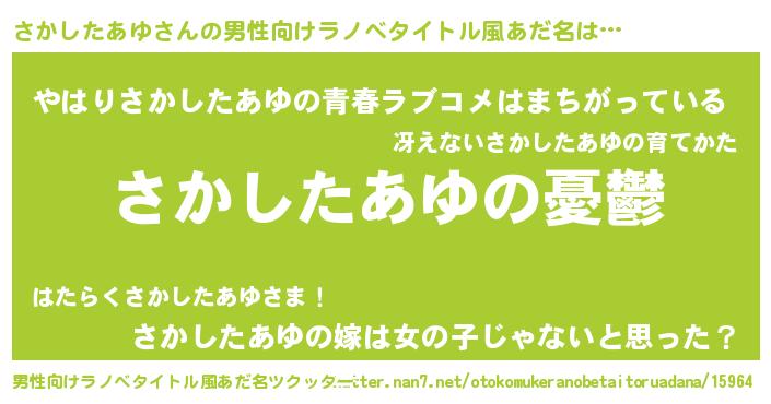 | 胡散臭い通販商品みたいなあだ名 | 『必ず成功するブレスレット…その名も「さかしたあゆ」』 |