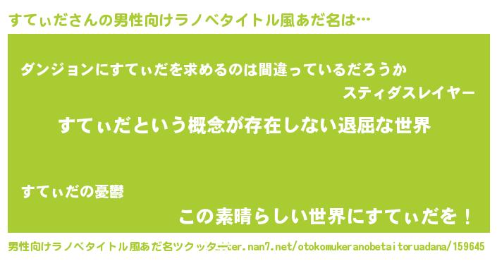| ヘコむあだ名 | 『すてぃだ(遠い目)』『すてっ子』 |