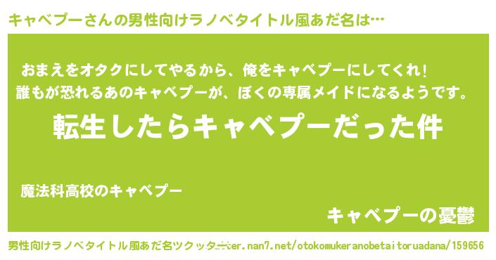 | ヘコむあだ名 | 『キャにゅー』『キャベプー(震え声)』 |