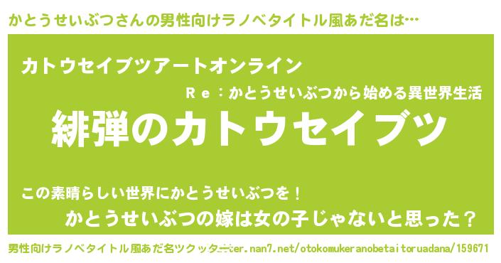 | 女子向けラノベタイトル風あだ名 | 『シンデレラかとうせいぶつ家の靴箱館』 |