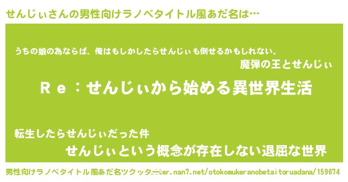 | 女子向けラノベタイトル風あだ名 | 『せんじぃストレイドッグス』 |