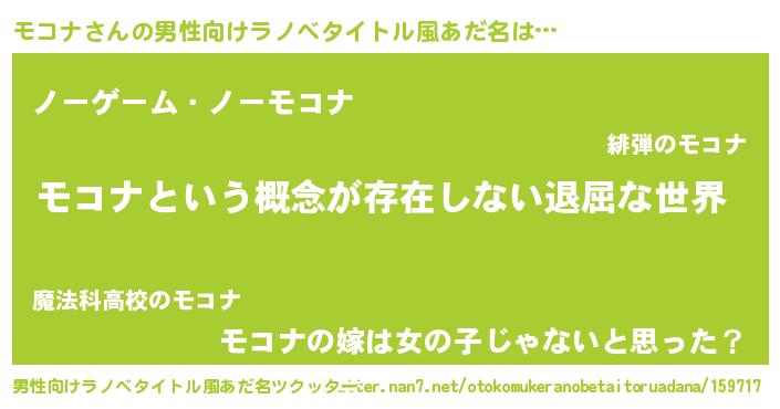 | 意味不明あだ名 | 『永久保存モコナ』『自称モコナ』 |