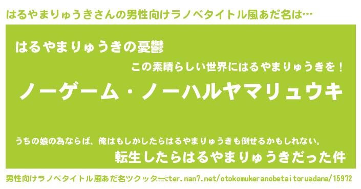 | 女子向けラノベタイトル風あだ名 | 『はるやまりゅうき恋絵巻』 |