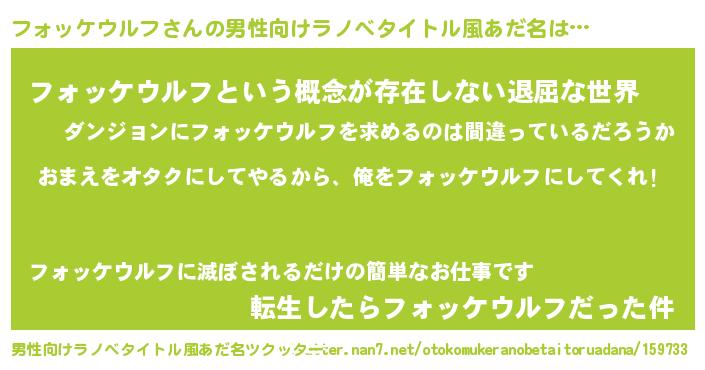 | 女子向けラノベタイトル風あだ名 | 『フォッケウルフ夫妻のなれそめ』 |