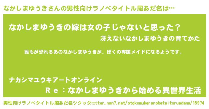 | 胡散臭い通販商品みたいなあだ名 | 『前代未聞の水素水…その名も「なかしまゆうき」』 |