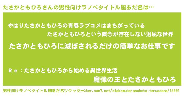 | 意味不明あだ名 | 『たさかともひろフォーエバー』 |