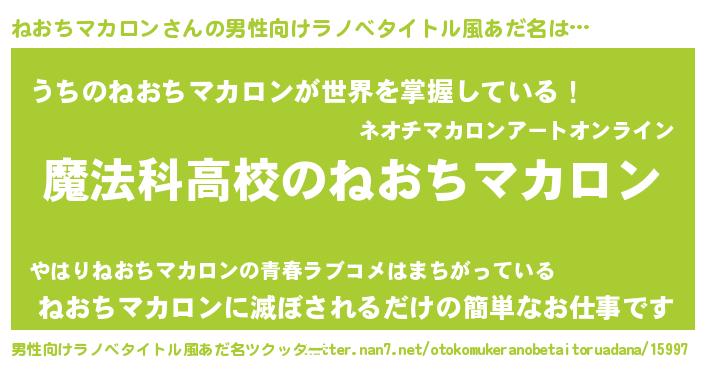 ねおちマカロンさんの男性向けラノベタイトル風あだ名をツクッター!