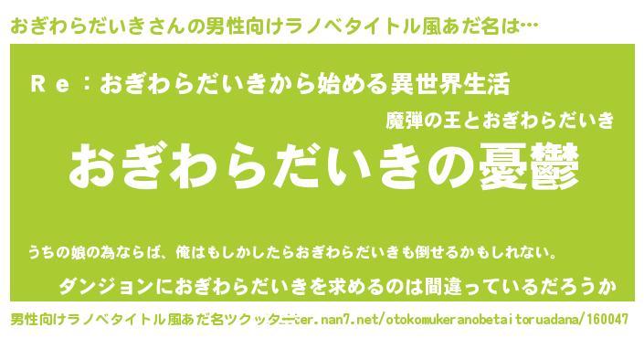 | 胡散臭い通販商品みたいなあだ名 | 『必ず成功するブレスレット…その名も「おぎわらだいき」』 |