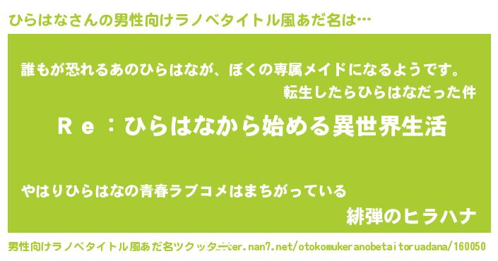 | 意味不明あだ名 | 『自称ひらはな』『永久保存ひらはな』 |