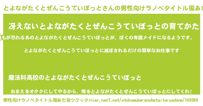 | ヘコむあだ名 | 『とよながたくとぜんこうていぼっと(遠い目)』 |