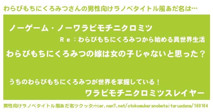 | 欧米人風あだ名 | 『ウサインわらびもちにくろみつ』 |