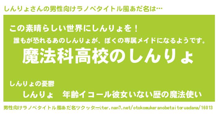 | ヘコむあだ名 | 『しんりょ(爆)』『しんにー』 |