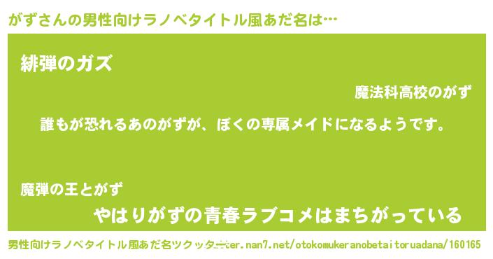 | 恥ずかしいあだ名 | 『がずちん』『がずっちょ』 |