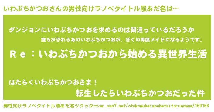 | 女子向けラノベタイトル風あだ名 | 『いわぶちかつおストレイドッグス』 |
