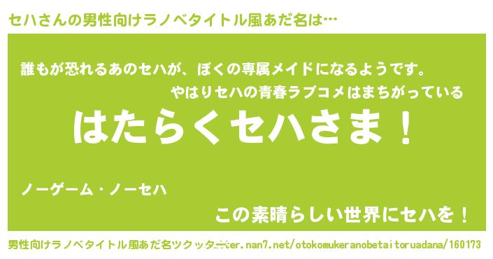 | 胡散臭い通販商品みたいなあだ名 | 『絶対に幸福をもたらす健康食品…その名も「セハ」』 |