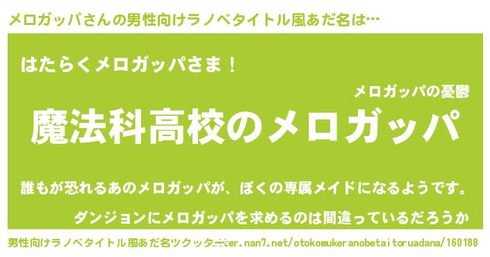 | 女子向けラノベタイトル風あだ名 | 『メロガッパなんてお断りですっ。』 |