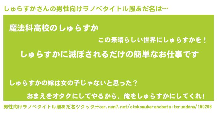 | 意味不明あだ名 | 『自称しゅらすか』 |