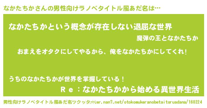 | 胡散臭い通販商品みたいなあだ名 | 『100人中100人が認めたマグネット磁石…その名も「なかたちか」』 |