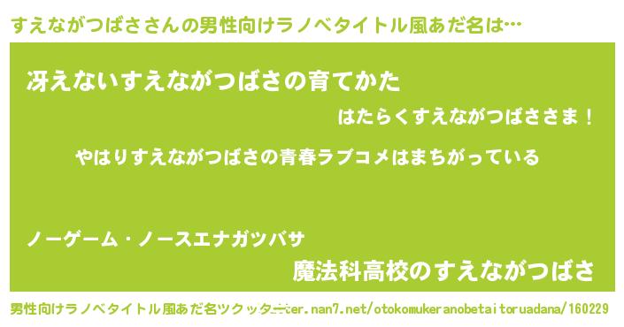 | 女子向けラノベタイトル風あだ名 | 『すえながつばさの雑貨屋さん』 |