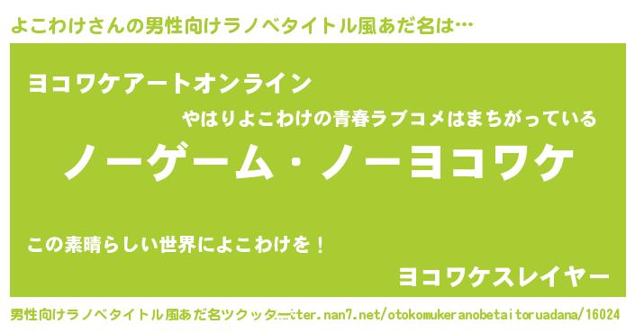 | 女子向けラノベタイトル風あだ名 | 『よこわけ恋絵巻』『よこわけ伯爵の花嫁』 |