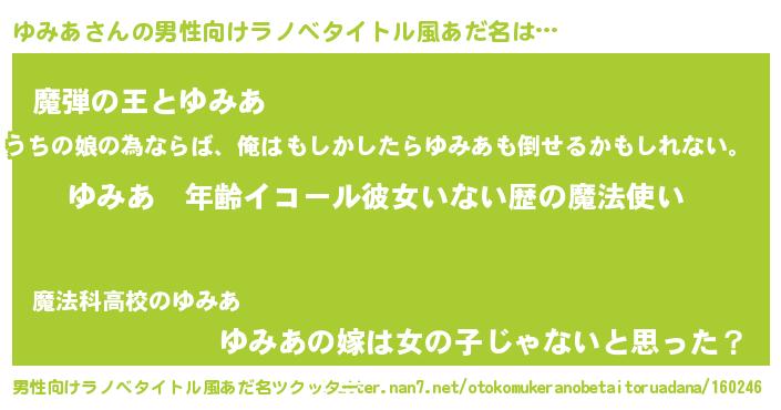 | 意味不明あだ名 | 『ヨモギ科ゆみあ属』『自称ゆみあ』 |