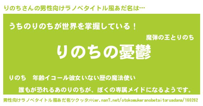 | 女子向けラノベタイトル風あだ名 | 『(仮)りのちのやんごとなき事情』 |