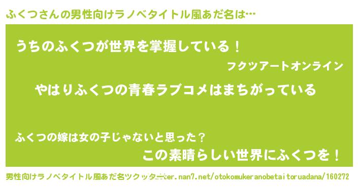 | 胡散臭い通販商品みたいなあだ名 | 『幸せが訪れる高級そうな壺…その名も「ふくつ」』 |