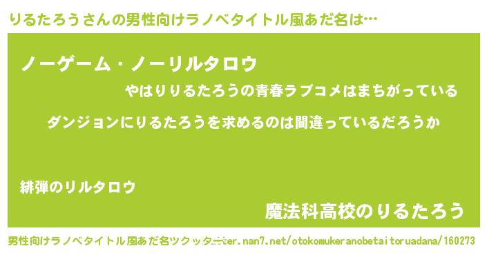 | 女子向けラノベタイトル風あだ名 | 『りるたろうは平凡を望む』 |